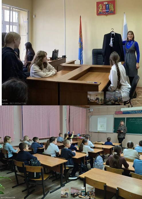 В ходе встречи Екатерина Юрьевна рассказала об основных правах и обязанностях несовершеннолетних, об административной и уголовной ответственности несовершеннолетних, затронула актуальные вопросы о вовлечении подростков в незаконный оборот наркотических и психотропных веществ, а также в занятие экстремистской и террористической деятельностью; о структуре мирового суда, о категории дел, рассматриваемых мировым судом, об используемых судом современных технологиях. Ребята с большим интересом ознакомились в здании суда с рабочим местом судьи, залом судебных заседаний, мировой судья рассказала им о значении государственной символики, присутствующей во всех залах судебного заседания, а именно государственного флага и герба Российской Федерации, флага и герба Ивановской области, а также о символе правосудия – древнегреческой богине Фемиде, олицетворяющей закон, справедливость и порядок. Ученики были введены в курс требований, предъявляемых к кандидатам на должности работников аппарата суда и судей, при этом разъяснена возможность стажировки на судебных участках и дальнейшего трудоустройства. В ходе встречи ребята задали мировому судье много интересных вопросов о работе в суде. 21 ноября 2025 года с учащимися 3 А и 8 Б классов МБОУ СШ №2 г.Тейково встретилась судья Димитриенко Татьяна Александровна. Татьяна Александровна также рассказала ребятам о правах и обязанностях несовершеннолетних, о возрасте наступления уголовной ответственности, о важной роли знания и соблюдения законов в обществе, об устройстве судебной системы Российской Федерации, об особенностях работы суда, о категории дел, рассматриваемых в судах. Младшим ребятам Татьяна Александровна вручила памятки об особенностях ответственности несовершеннолетних. Также 21 ноября 2025 года консультант Тейковского районного суда Плесовская Екатерина Андреевна и помощник судьи Малинкина Анна Александровна посетили 3 В и 4 Г МБОУ СШ №2 г. Тейково, где также рассказали ребятам их права и обязанности. Встреча получилась интересной и увлекательной. ![]() ![]() |