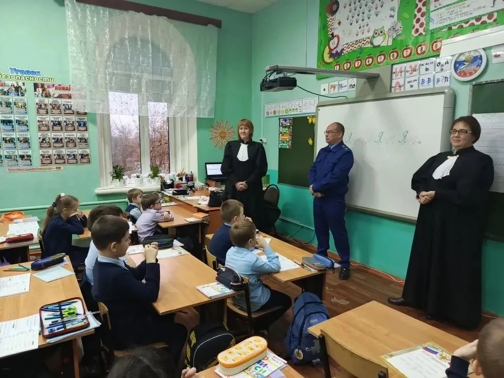 Накануне Дня юриста мировые судьи судебных участков №2, №3 Тейковского судебного района Гурьянова Юлия Владимировна и Щукина Наталья Владимировна, вместе с ними заместитель Тейковского межрайонного прокурора Храмов Александр Владимирович встретились с учениками 1 «В» класса МБОУ СШ №4 г.Тейково. Для ребят был проведен открытый урок, посвященный профессии юрист. Учащиеся узнали о значении юридической профессии, о работе судьи и прокурора, о том в каких сферах работают юристы. Также школьники узнали об истории возникновения праздника Дня юриста. Организаторы встречи рассказали учащимся о правилах поведения в общественных местах и в быту, о правах и обязанностях, об ответственности законных представителей несовершеннолетних. Тема открытого урока вызвала большой интерес у учеников. Ребята задали много вопросов, практически каждый из них поделился ситуацией из своей жизни. Ученики по итогам открытого урока сделали рисунки на тему: «Права глазами ребенка», которые были оформлены в выставку в помещениях судебных участков. Участникам выставки вручены благодарности.
