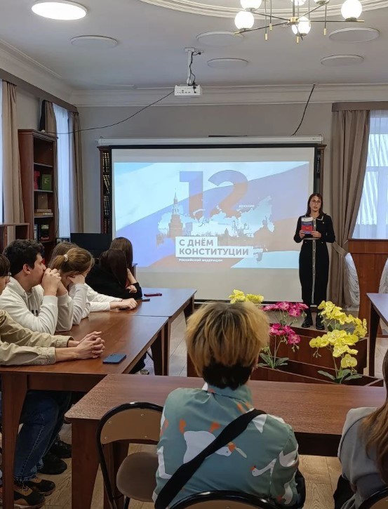 Конституция – Главный Закон, по нему мы все живем»: в рамках празднования Дня Конституции РФ мировой судья судебного участка №5 Тейковского судебного района Кузьмина Екатерина Юрьевна приняла участие в мероприятии, организованном работниками МУК «Гаврилово – Посадская ЦБС». В ходе мероприятия мировой судья рассказала старшеклассникам МБОУ «Гаврилово - Посадская средняя школа №2» об истории создания Конституции, о значении Конституции в жизни граждан, об основных правах и обязанностях, закрепленных в ней, познакомила с ее структурой; напомнила об официальных символах России. Затем прошла увлекательная викторина «Что ты знаешь о Конституции РФ», в которой школьники смогли продемонстрировать свои знания о Конституции и правовых нормах». Ребята активно отвечали на вопросы, обсуждали их и делились своим мнением. К мероприятию была подготовлена книжная выставка с юридическими и справочными изданиями, посвященными конституционному праву, государственной символике России. В рамках проводимого мероприятия отдельная тема была посвящена выбору ребятами будущей профессии. Е.Ю. Кузьмина рассказала ребятам о профессии судьи и должностях, которые есть в судебной системе, а также довела до сведения будущих выпускников информацию о возможности заключения с Управлением Судебного департамента в Ивановской области договоров о целевом обучении с обязательством последующего прохождения федеральной государственной службы в судах Ивановской области.