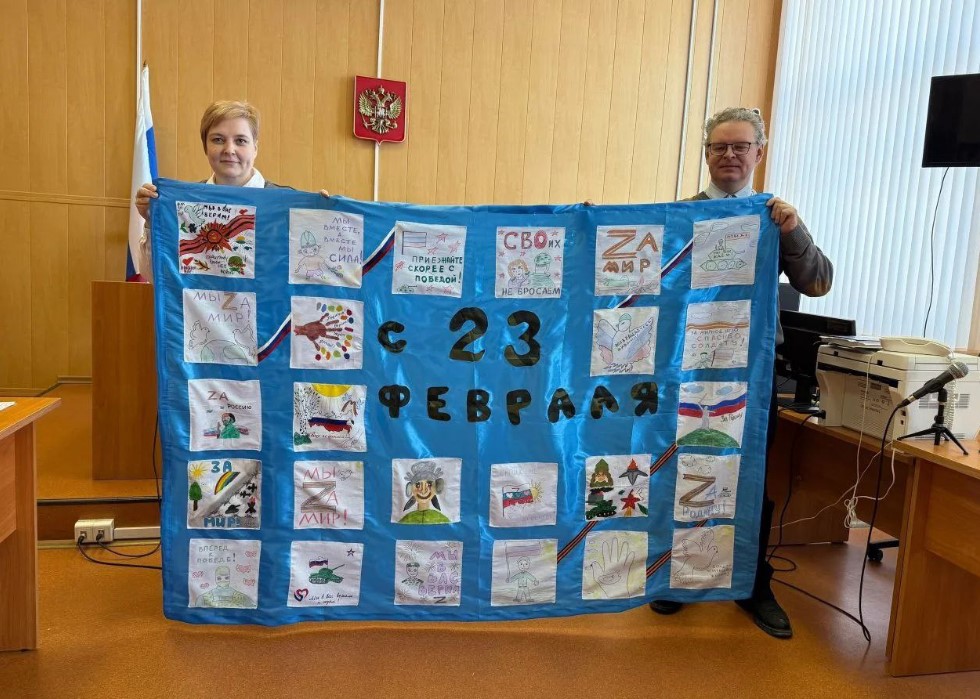 В акции приняли участие дети сотрудников суда, а также учащиеся 3 «В» и 5 «А» МБОУ СШ №2, 5 «А» и 1 «А» классов МОУ Гимназия №3 г. Тейково. Школьники не остались равнодушными и представили в Тейковский районный суд большое количество своих работ на тему праздника. Представленные ребятами работы были объединены в тематическое панно, которое будет направлено нашим военнослужащим в зону проведения специальной военной операции к празднику посвященному Дню защитника Отечества.